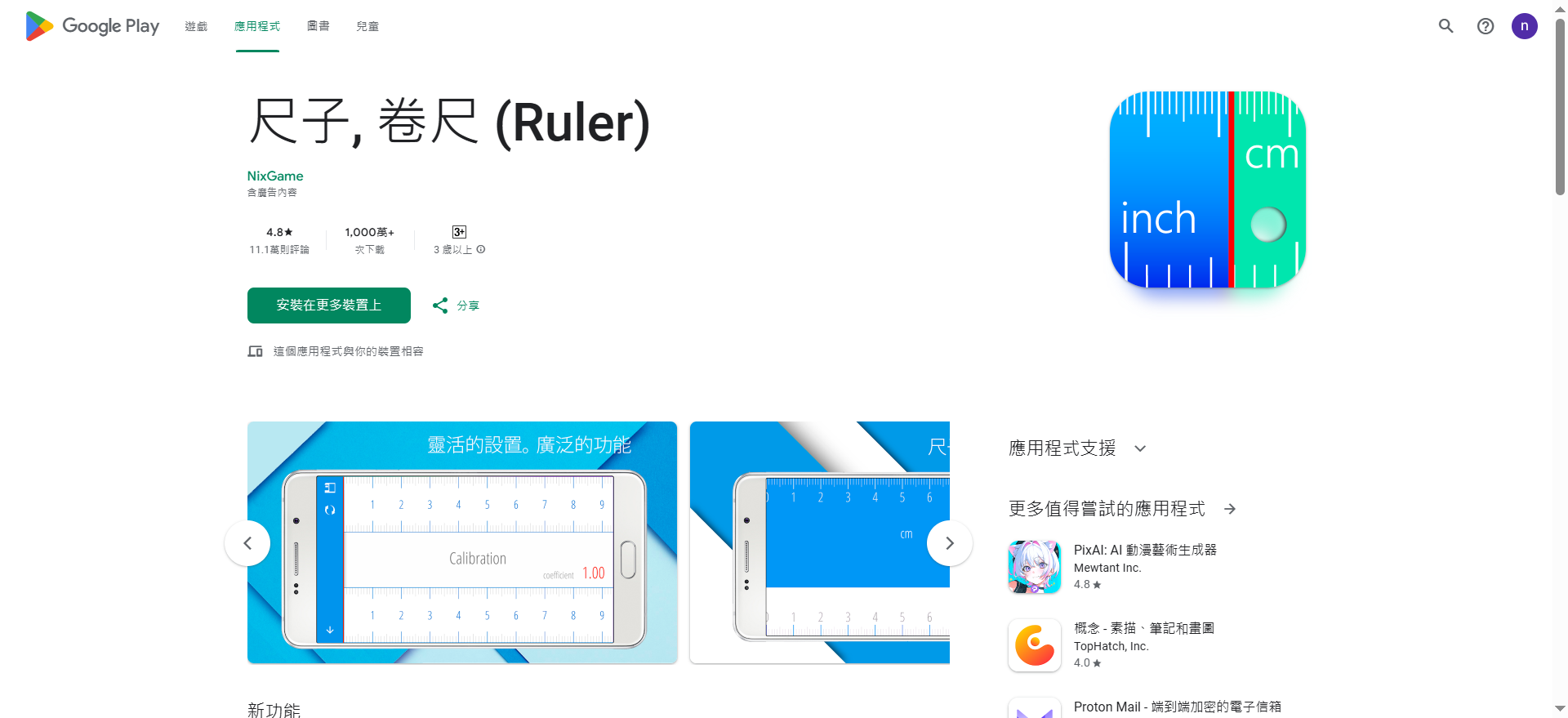 Google play 商店地址:https://play.google.com/store/apps/details?id=org.nixgame.ruler&hl=zh_TW