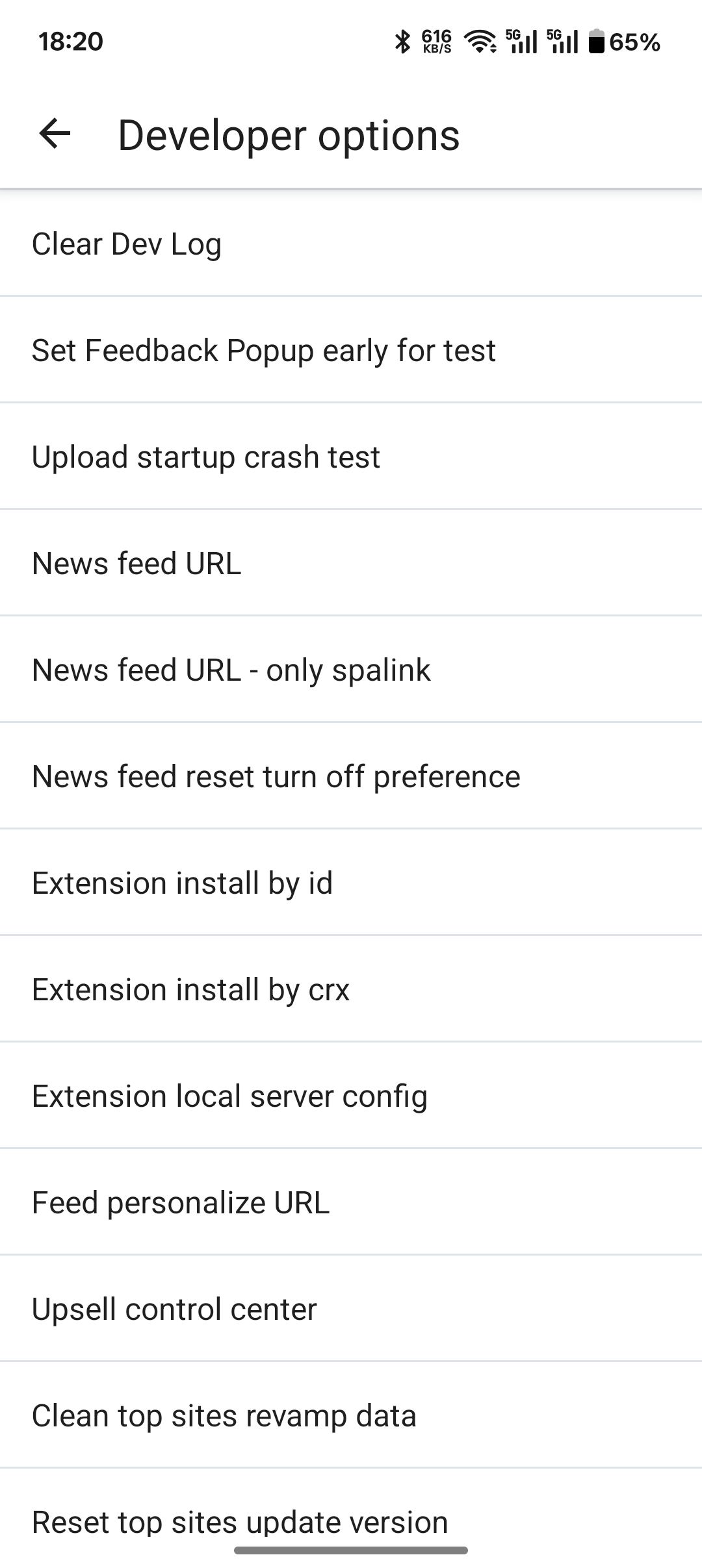 连续点击版本号 5 次 → 出现“已启用开发者选项”, 然后进入开发人员选项,可以看到如下页面,包含 “Extension Install by ID” 和 “Extension Install by crx”