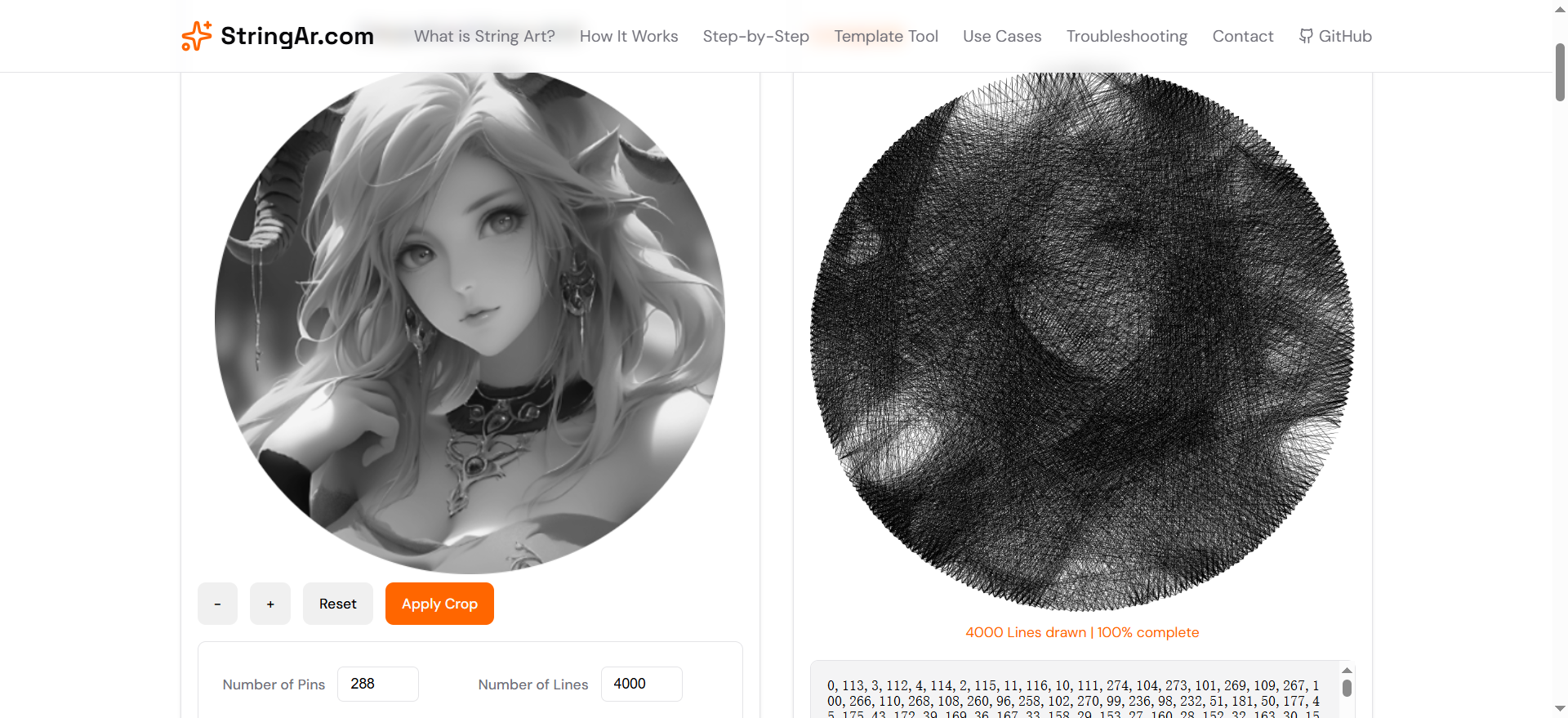 上传一张照片,算法会自动计算出最优的线条路径,生成详细的制作步骤。你可以按照生成的编号序列,用真实的钉子和线完成一幅独特的艺术作品。