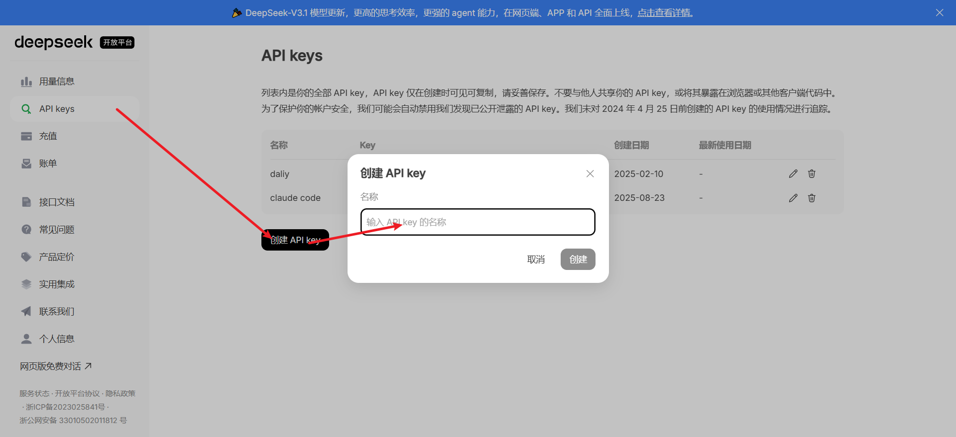 登录 deepseek 的开发平台 https://platform.deepseek.com/api_keys,充值个几块钱