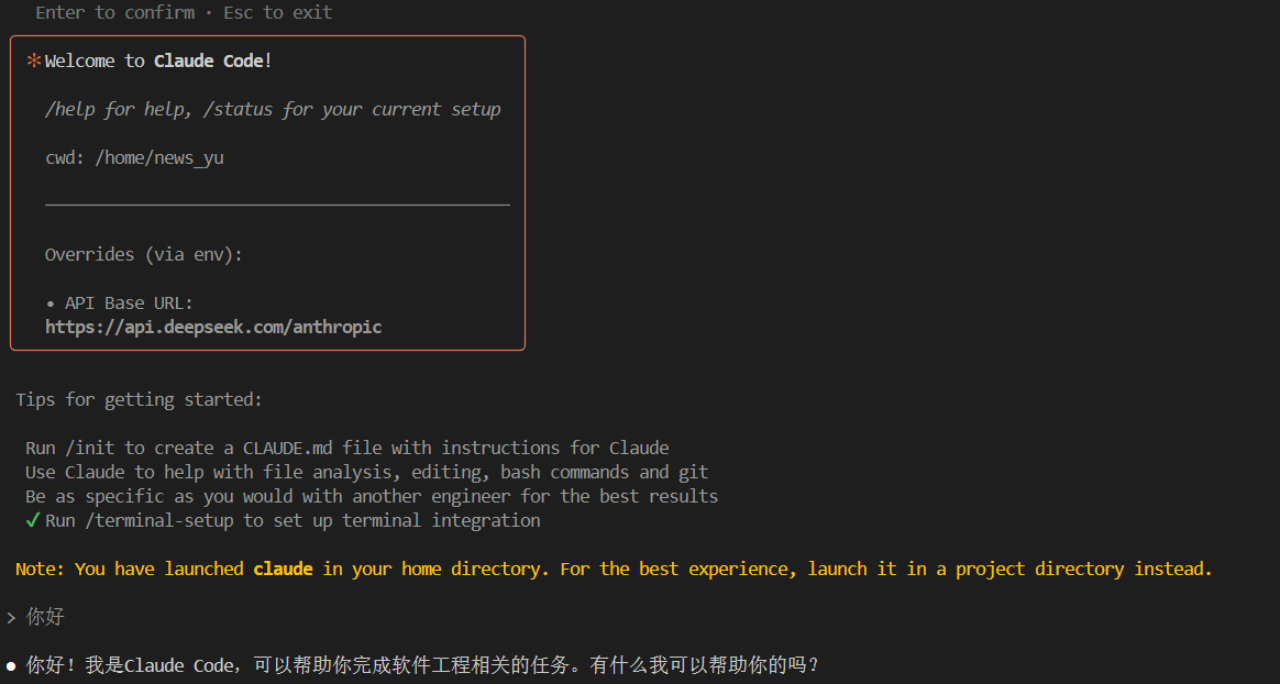 claude- 根据提示配置,即可开始使用。