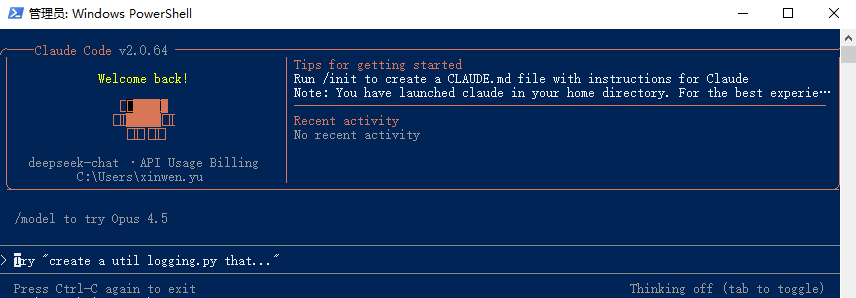[Environment]::SetEnvironmentVariable("ANTHROPIC_SMALL_FAST_MODEL", "deepseek-chat", "User")设置完成后需重新打开一个新的 PowerShell 窗口才能生效。